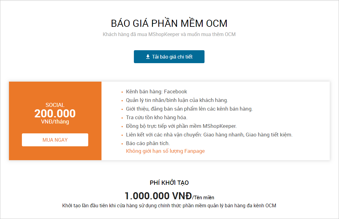 Với khách hàng chưa sử dụng phần mềm MShopKeeper, có thể đặt mua gói phần mềm MShopKeeper +OCM như sau: