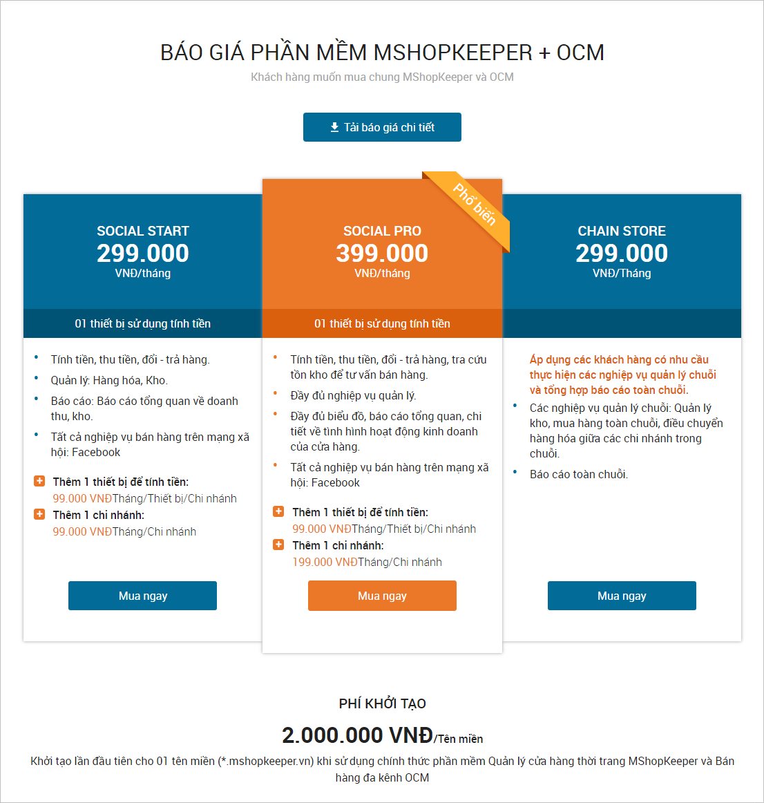 - Gói Social Pro, cung cấp đầy đủ tất cả nghiệp vụ phần mềm MShopKeeper.