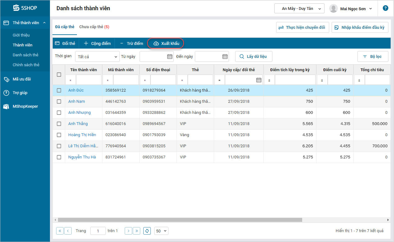 Chi tiết thay đổi: Kể từ phiên bản R16, chương trình cho phép xuất khẩu danh sách và điểm của thành viên trên 5Shop ra file excel.