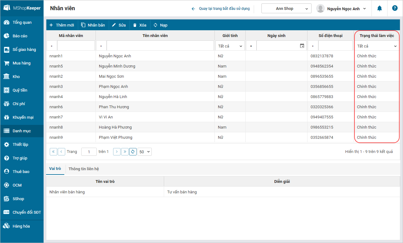 - Danh sách nhân viên chính thức