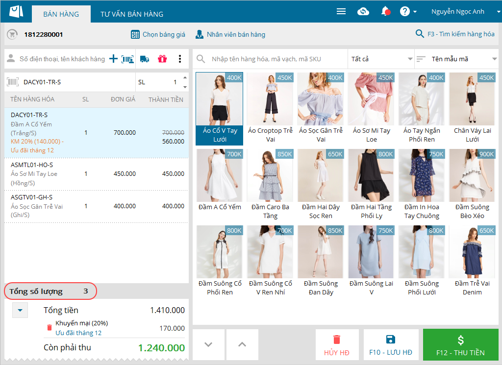1. Khi tính tiền, Thu ngân muốn biết tổng số lượng hàng hóa đã chọn cho khách hàng là bao nhiêu để so sánh với số lượng hàng thực tế bên ngoài xem đã xuất đúng số lượng hàng thực tế như ghi nhận trên phần mềm chưa.