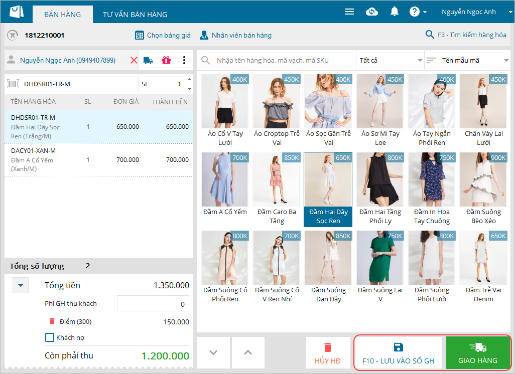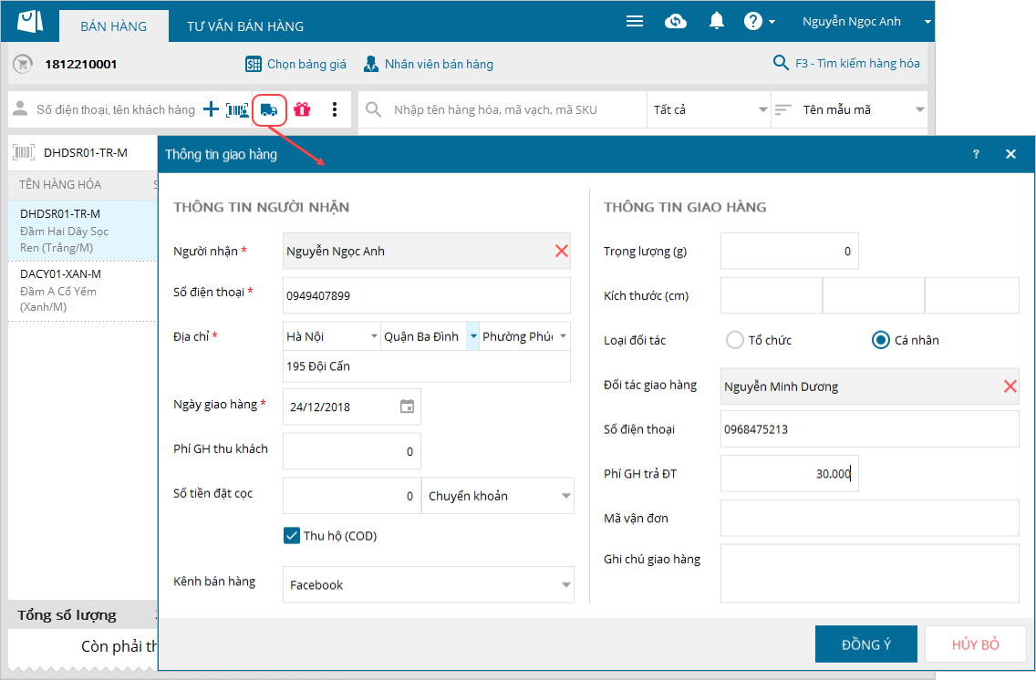 - Thực hiện Lưu vào sổ giao hàng hoặc nhấn Giao hàng để giao ngay cho khách.