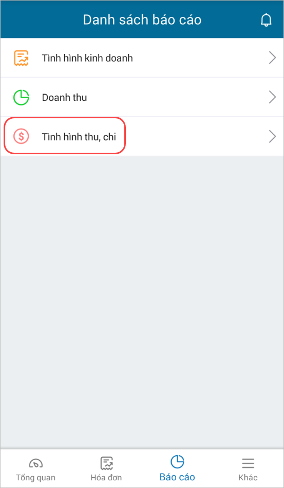 - Chọn Tình hình thu chi.