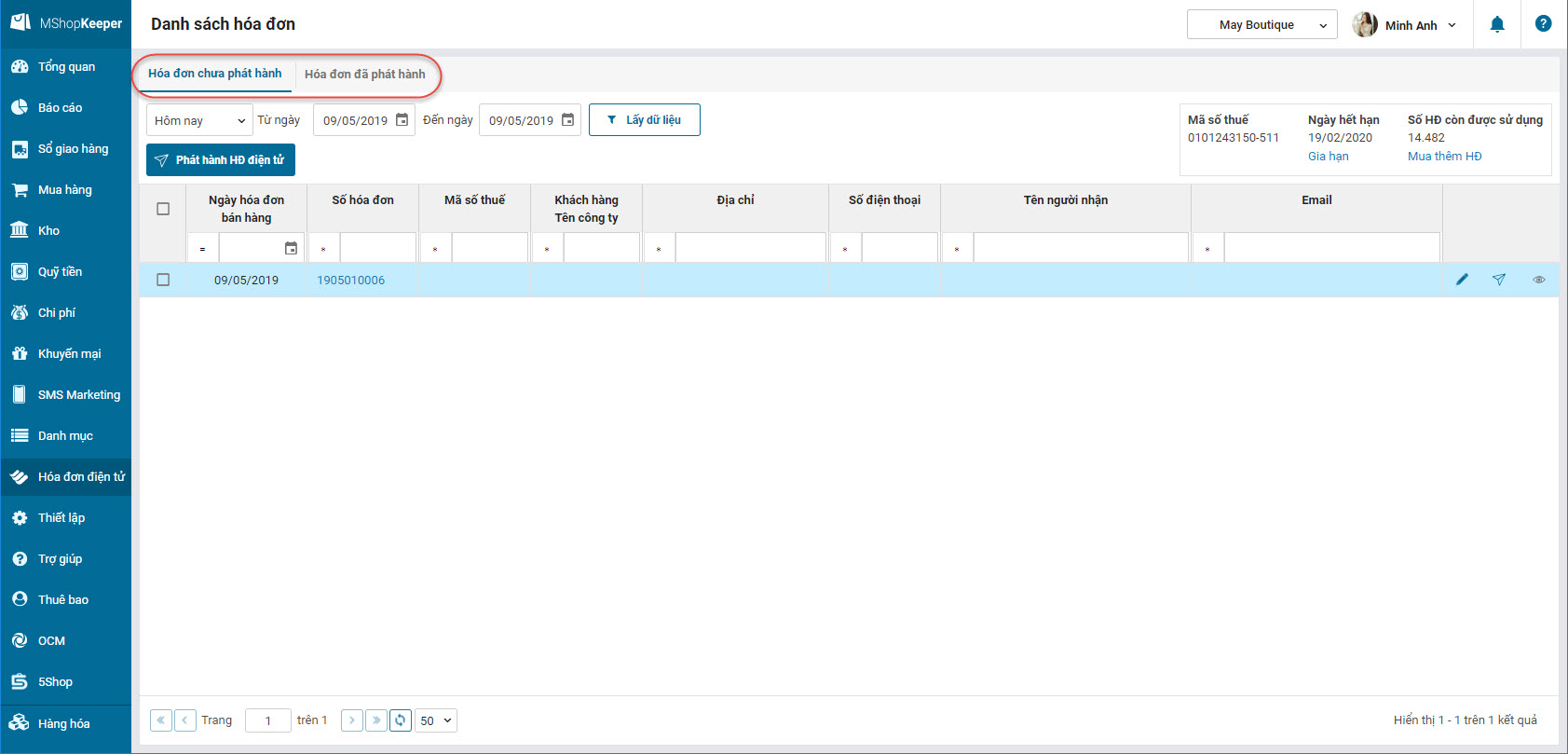 - Trong màn hình danh sách có 2 tab hóa đơn chưa phát hành và hóa đơn đã phát hành