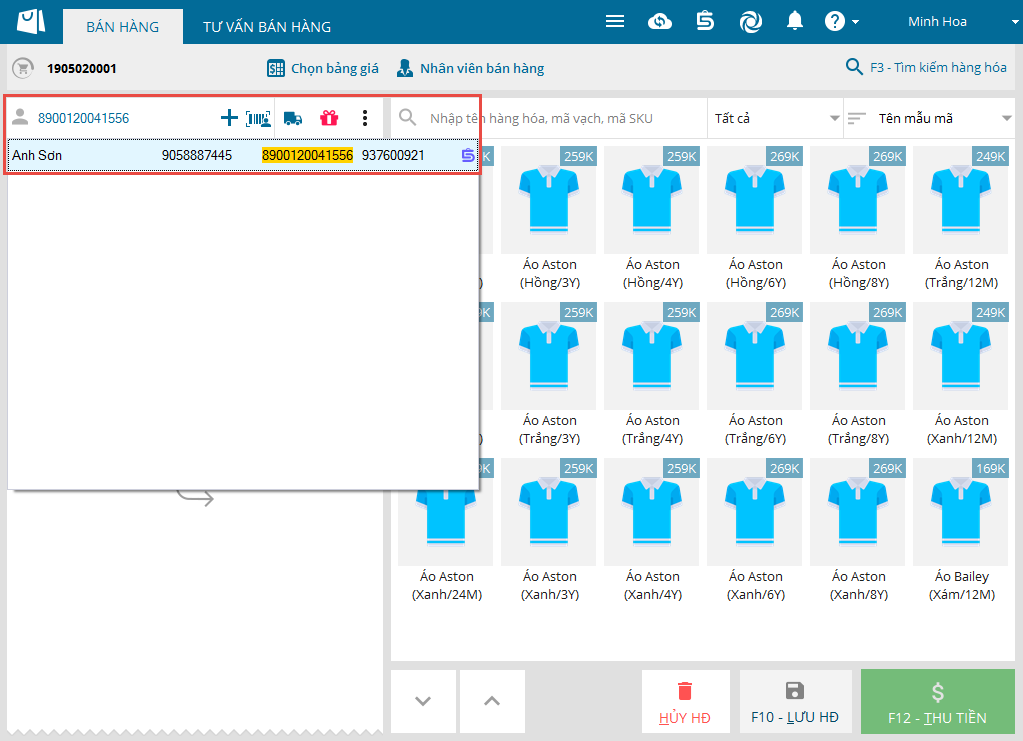 - Khi bán hàng thu ngân có thể tìm kiếm khách hàng theo mã thẻ thành viên bằng cách nhập mã thẻ vào ô tìm kiếm. Hoặc thu ngân có thể quét mã thẻ thành viên/mã thẻ thành viên 5Shop đã có trên cửa hàng để tìm kiếm khách hàng. Chương trình sẽ tích điểm cho khách hàng được chọn. Khi sử dụng điểm sẽ được trừ số điểm tích lũy của khách hàng đã chọn.