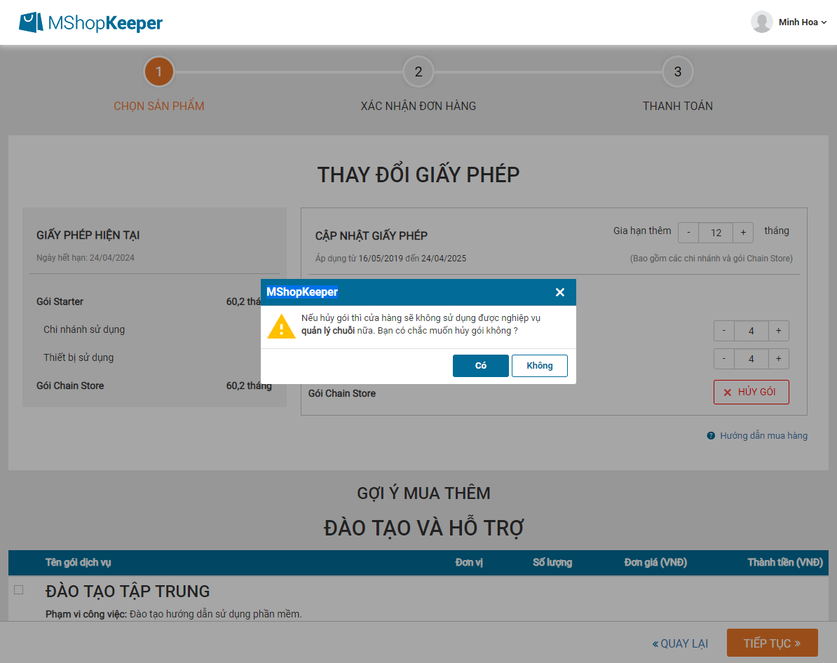 5. Khi gia hạn/mua thêm ChainStore, khách hàng muốn có mô tả rõ ràng hơn để không bị xóa nhầm gói ChainStore, dẫn đến không sử dụng được nghiệp vụ