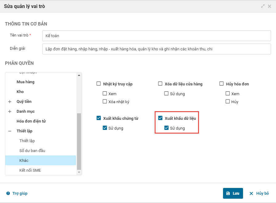 4. Phân quyền chi tiết cho chức năng xuất khẩu dữ liệu