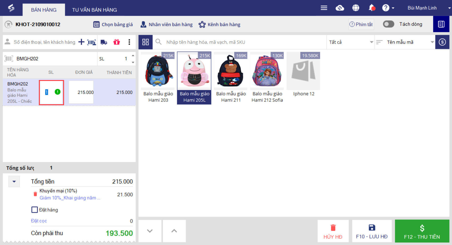 Tại màn hình lập hóa đơn bán hàng, thu ngân chọn hàng hóa rồi nhập trực tiếp trên ô số lượng của hàng hóa đó.