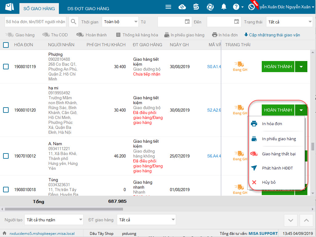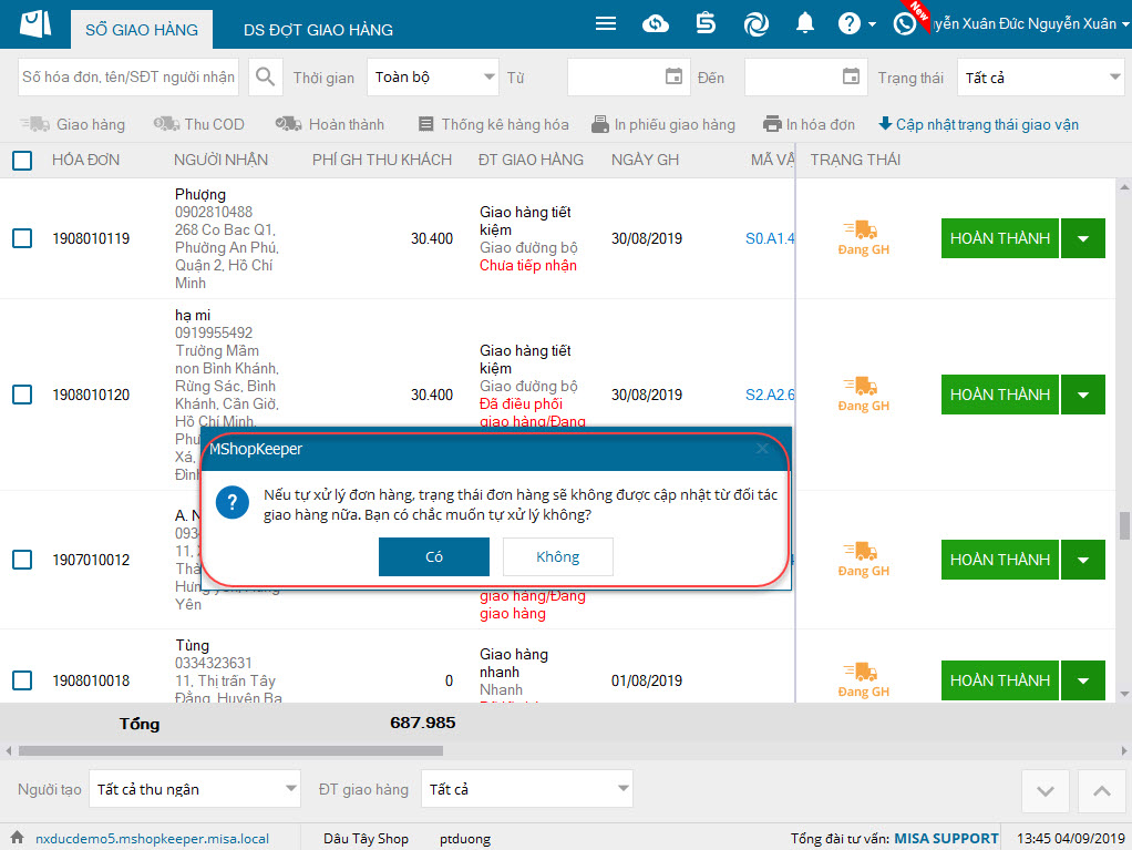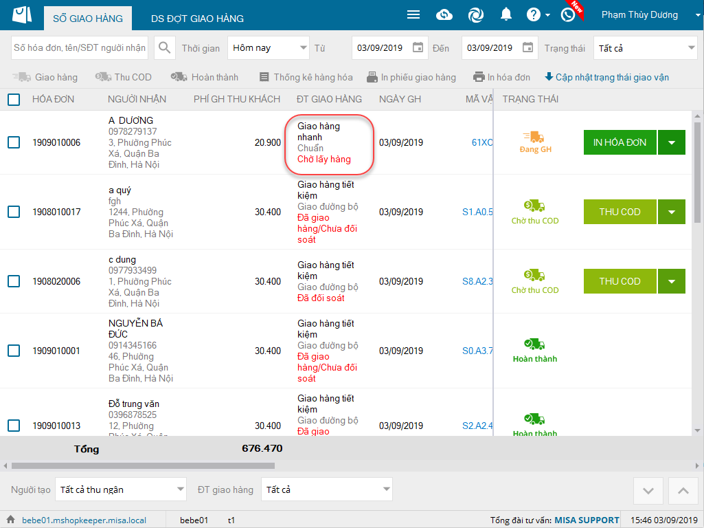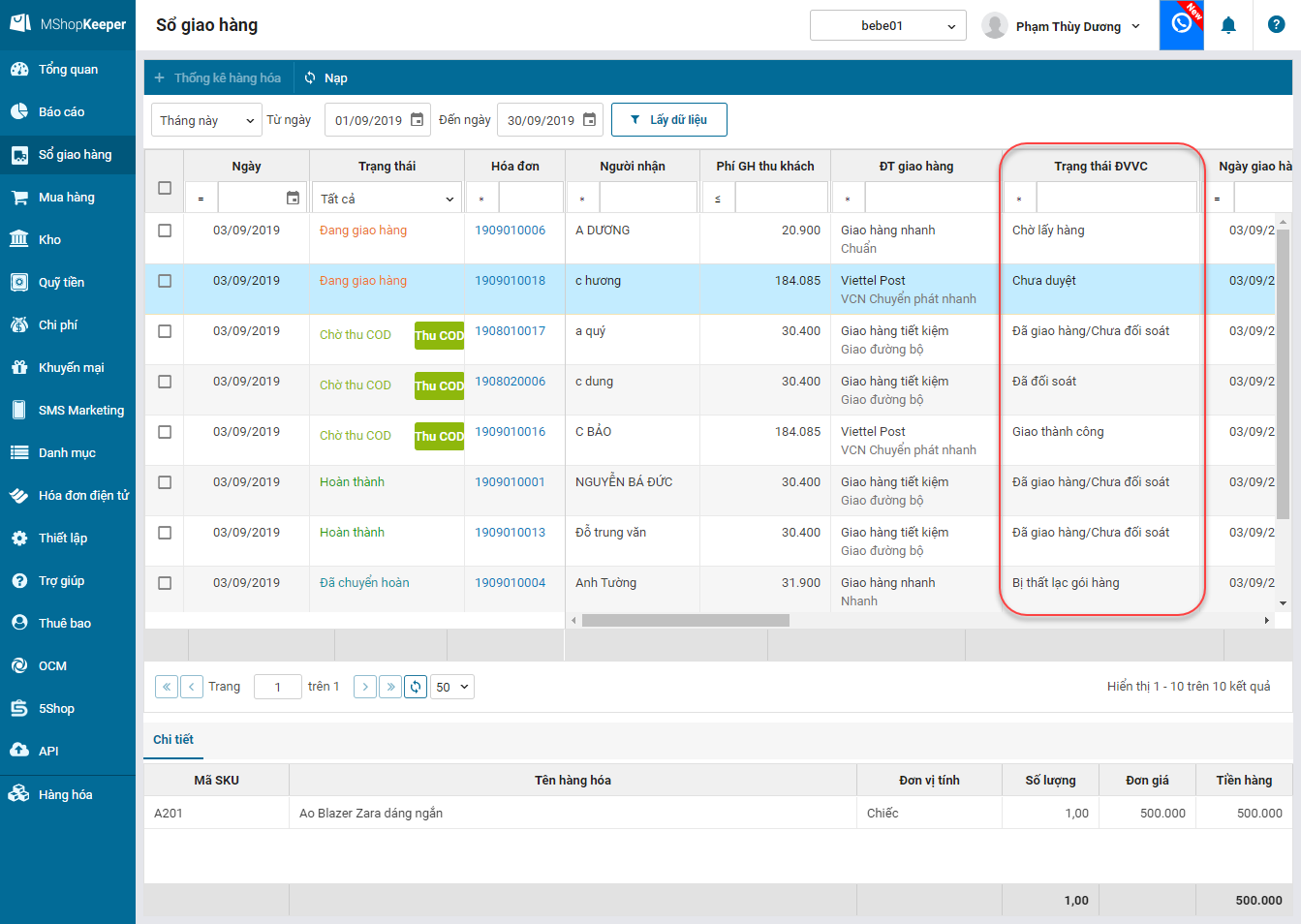 3. Cửa hàng xem được trạng thái đơn hàng của đơn vị vận chuyển ngay trên phần mềm MShopKeeper