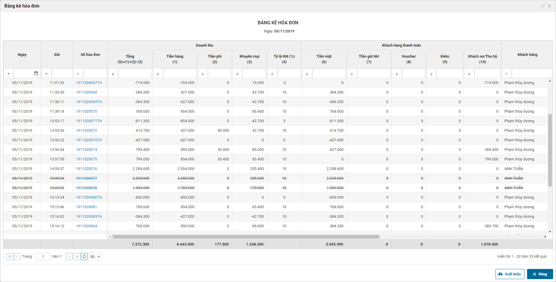 - Chương trình chưa áp dụng nâng hạ hạng thẻ cho trường hợp sửa, đổi trả và nhập bù hóa đơn.