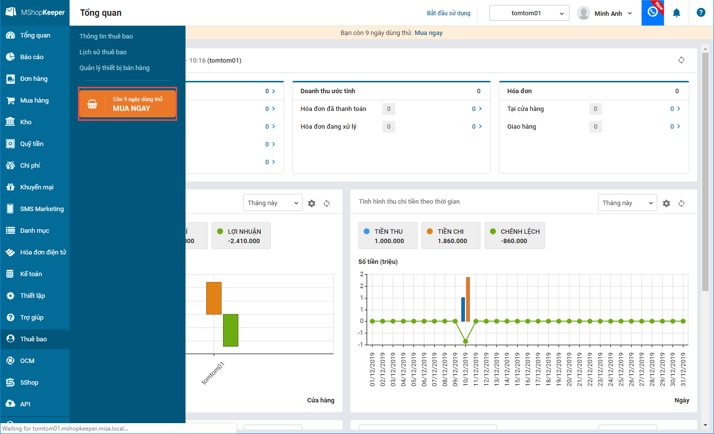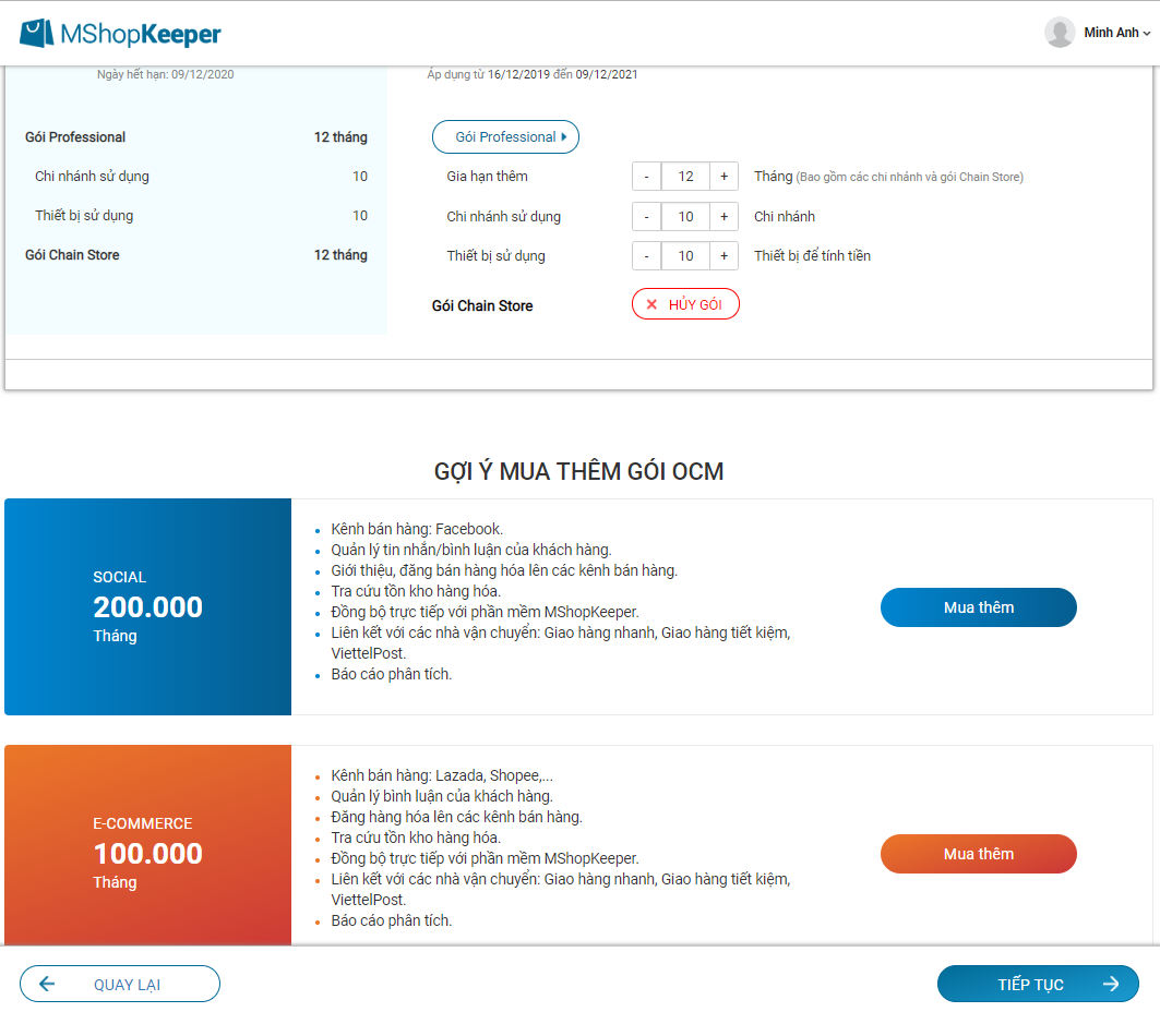 1. Chương trình cho phép quản lý cửa hàng mua riêng giấy phép MShopKeeper và OCM.