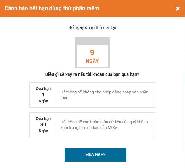 Hoặc nhấn Mua ngay trên màn hình cảnh báo khi đăng nhập vào chương trình
