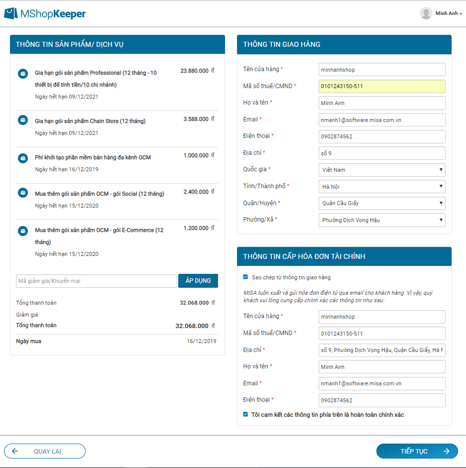 - Cửa hàng chỉ có giấy phép MShopKeeper, mua thêm OCM