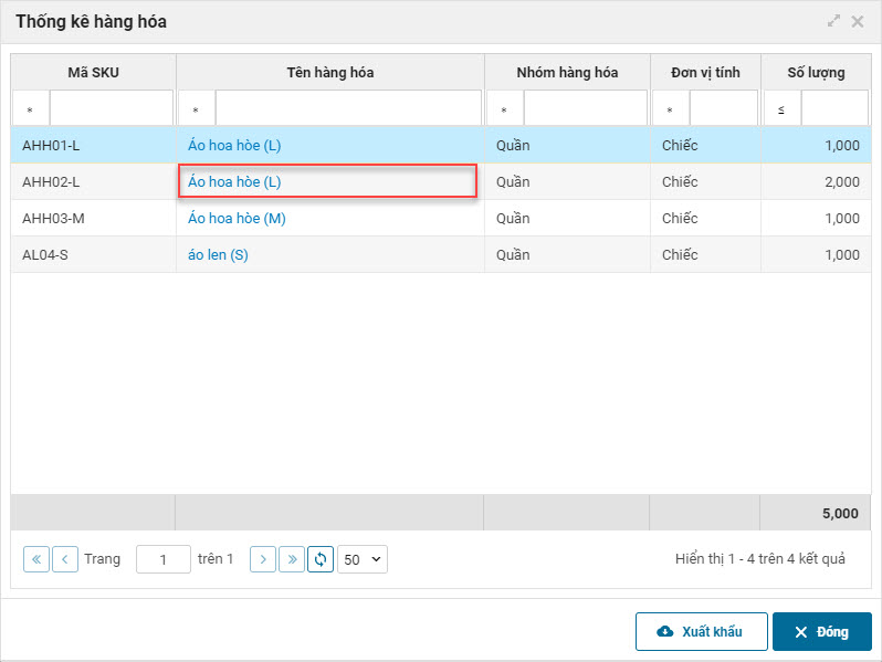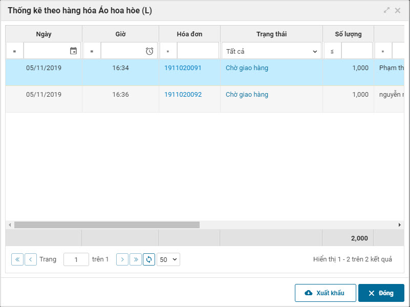 Bước 3: Xem thống kê số lượng hàng hóa theo các đơn hàng đã chọn tại bước 2