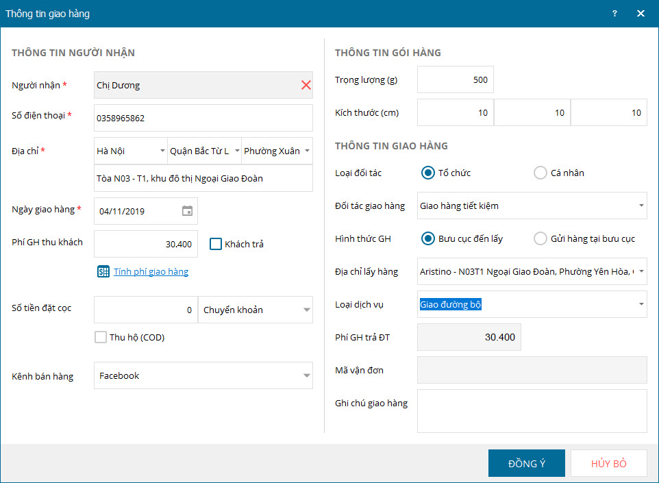 Bước 3: Sau khi sửa số tiền đặt cọc thành công, nhấn lưu vào sổ giao hàng, gửi đơn hàng hoặc giao hàng