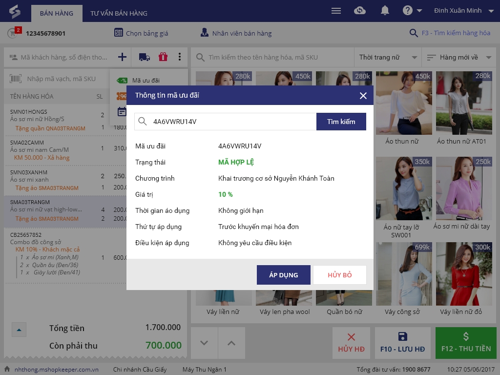 Để áp dụng mã ưu đãi cho khách, thu ngân thực hiện theo các bước dưới đây.