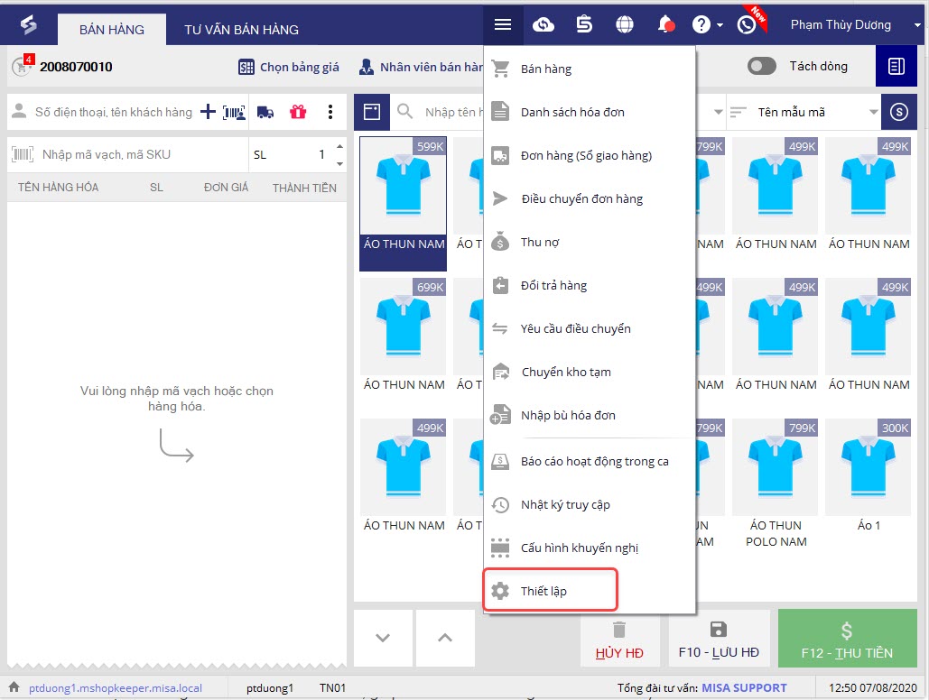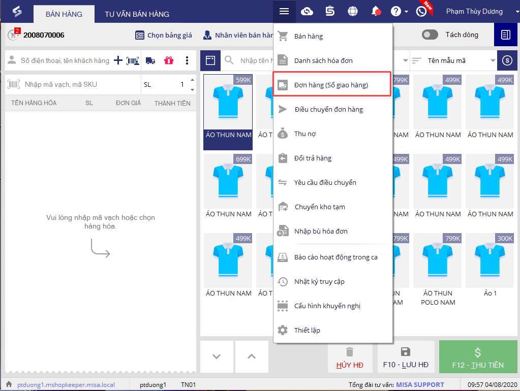 Bước 1: Trên màn hình bán hàng, nhấn vào biểu tượng