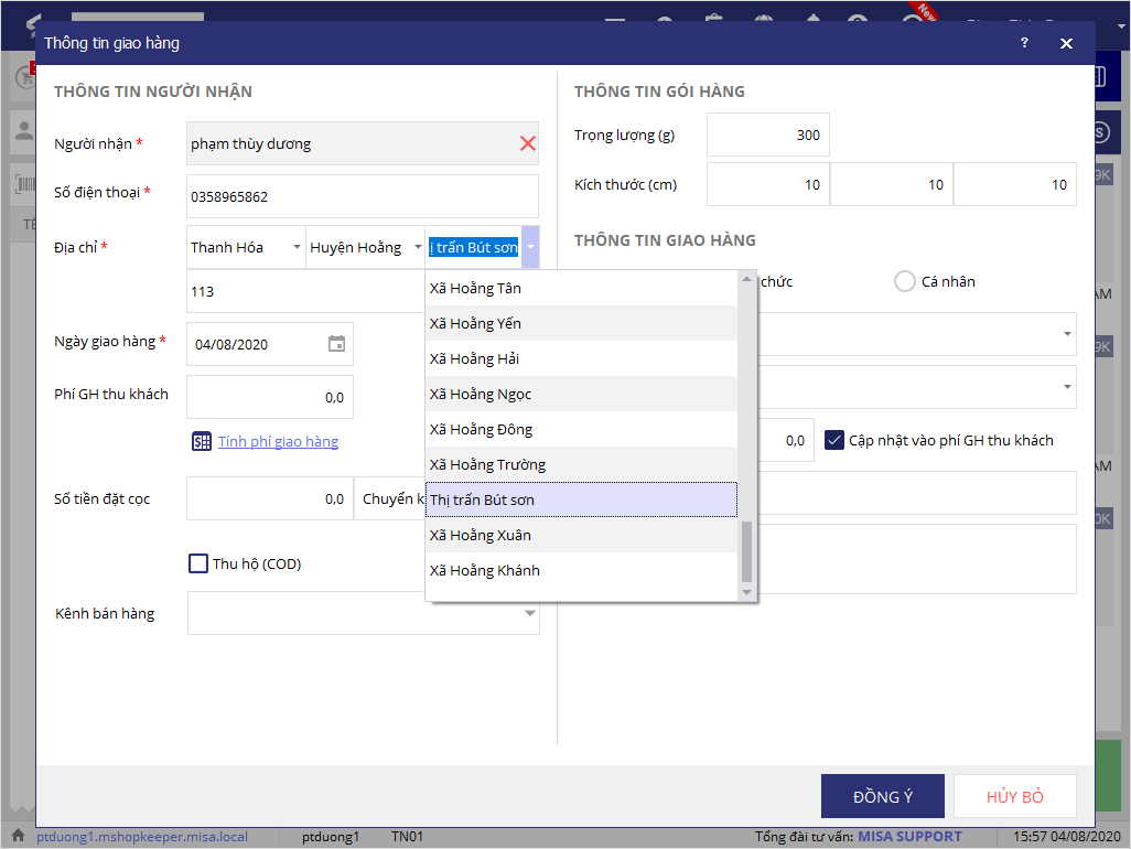 3. Bổ sung địa chỉ giao hàng: thị trấn Bút Sơn, Hoằng Hóa, Thanh Hóa, các xã đã gộp.
