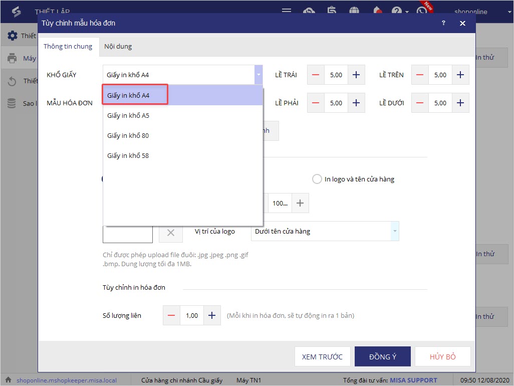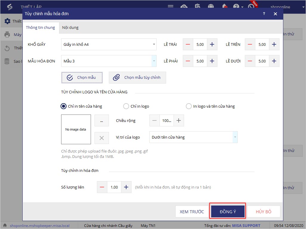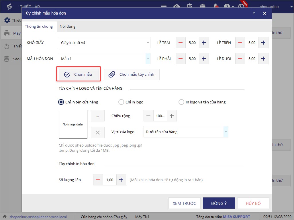 Bước 4: Nhấn Xem mẫu để xem mẫu in. Tích chọn mẫu in cửa hàng muốn thiết lập.