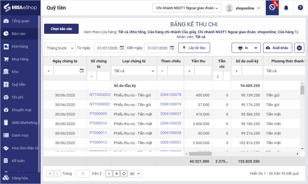 - Cho phép quản lý/kế toán theo dõi báo cáo thu chi trên toàn chuỗi/nhiều chi nhánh để không mất công xem từng cửa hàng rồi tổng hợp lại