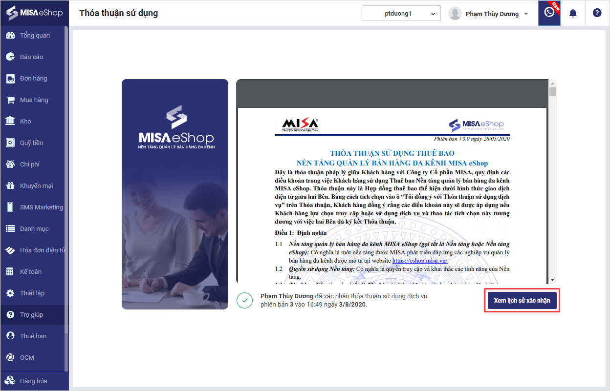 - Bổ sung xác nhận và lưu lịch sử thỏa thuận sử dụng dịch vụ.