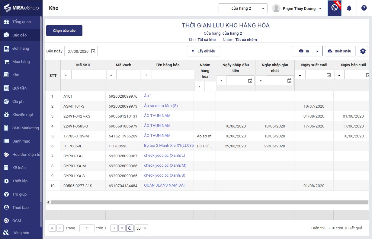 - Bổ sung báo cáo Thời gian lưu kho giúp cửa hàng biết thời gian tồn kho của từng hàng hóa, biết được hàng hóa nào tồn kho lâu, xác định nguyên nhân và đưa ra chính sách bán hàng phù hợp.