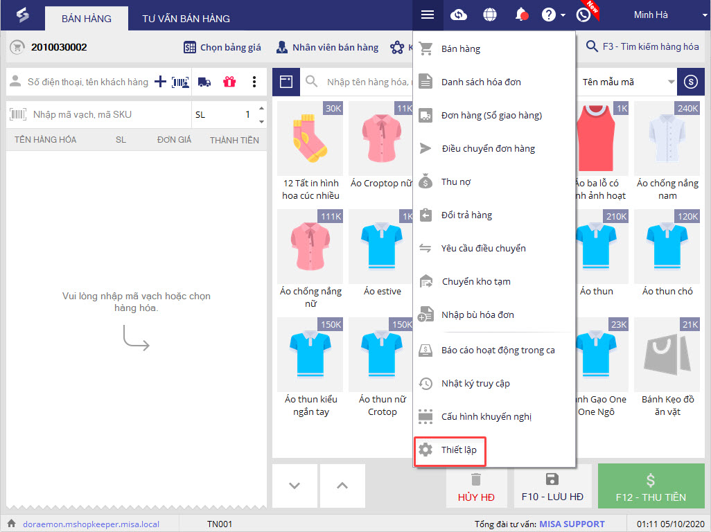 Bước 1: Trên phần mềm bán hàng, chọn Thiết lập.