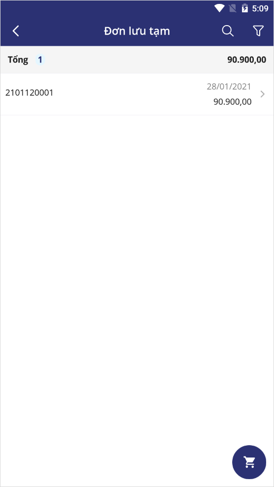 - Khi khách hàng có hóa đơn đang lưu tạm cần thanh toán, thu ngân nhấn vào biểu tượng