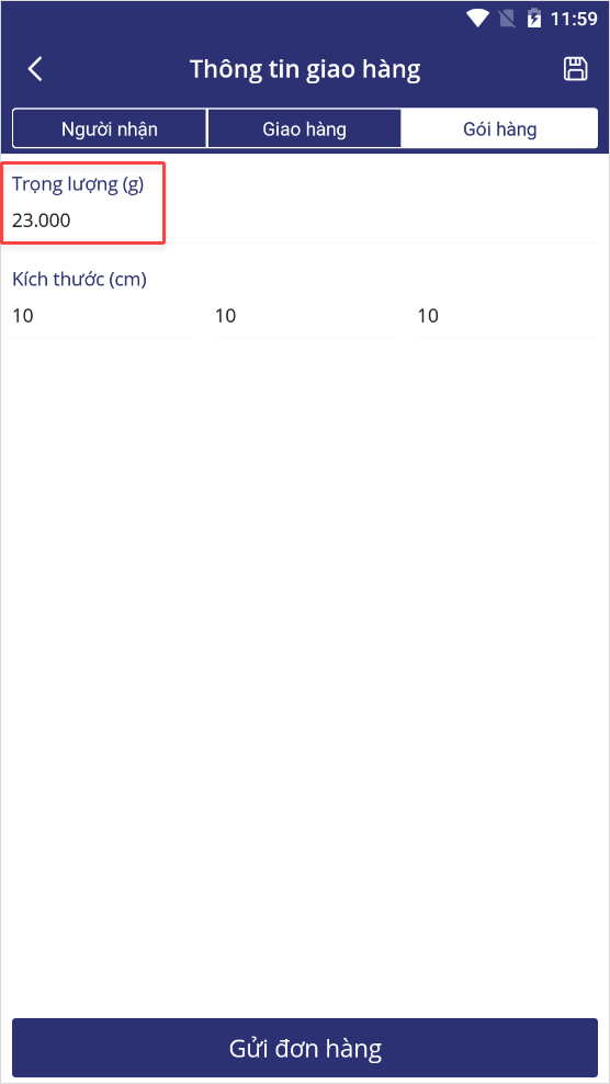 Mục đích: Khi tạo đơn giao cho đơn vị vận chuyển, khối lượng đơn hàng sẽ mặc định theo khối lượng hàng hóa trong đơn, nếu trọng lượng đơn hàng vượt quá định mức mà đơn vị vận chuyển quy định có thể điều chỉnh kịp thời.