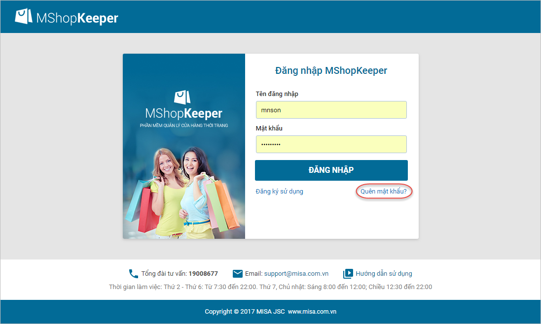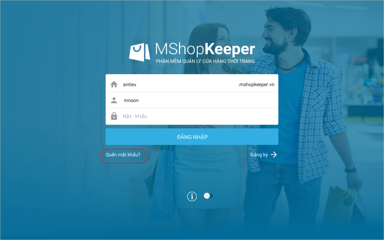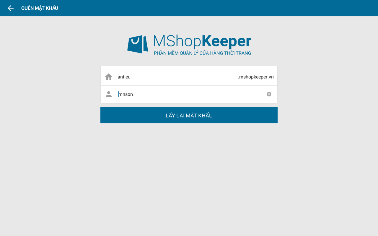 Kể từ phiên bản R4, khi sử dụng ứng dụng MShopKeeper Bán hàng, Tư vấn bán hàng, Quản lý, người dùng có thể lấy lại mật khẩu ngay trên ứng dụng mà không cần truy cập vào trình duyệt web.