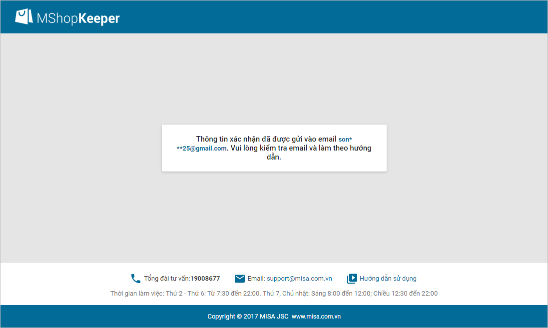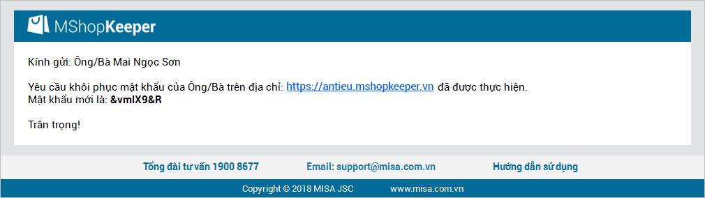 • MISA sẽ gửi hướng dẫn khôi phục mật khẩu đến email tài khoản.