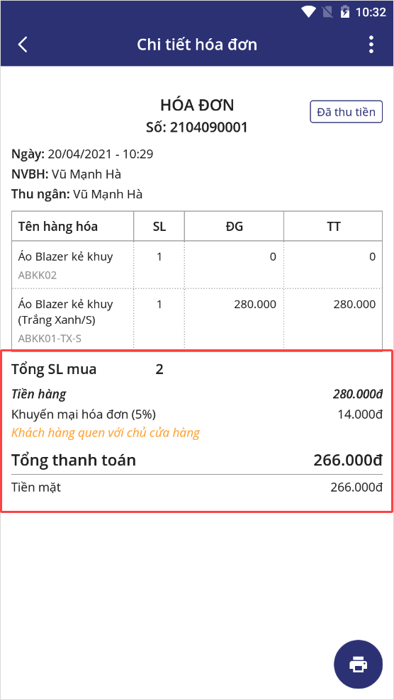 2. Thu ngân có thể theo dõi thành tiền của hàng hóa trước và sau giảm khi bán hàng