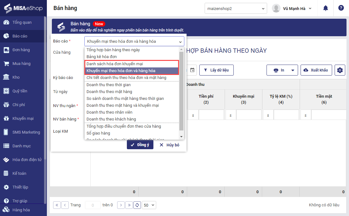 5. Bổ sung thêm các báo cáo khuyến mại để kiểm soát nội bộ hoạt động khuyến mại của cửa hàng