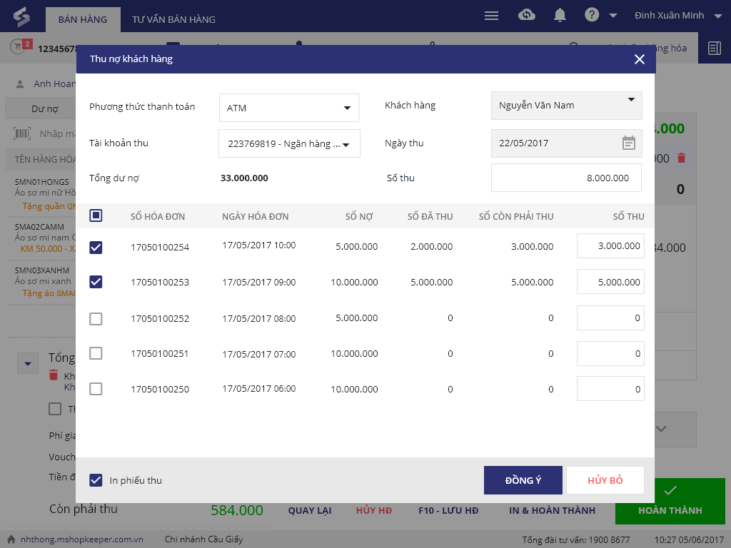 Trên phần mềm bán hàng, khi thu nợ khách hàng, thu ngân có thể theo dõi tất cả các khoản nợ khách hàng đang có trong chuỗi