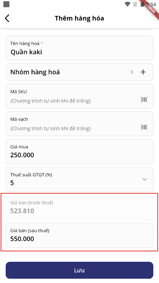 Đối với những cửa hàng kinh doanh hàng hóa có dụng thuế suất, trên app quản lý, chủ cửa hàng thực hiện như sau: