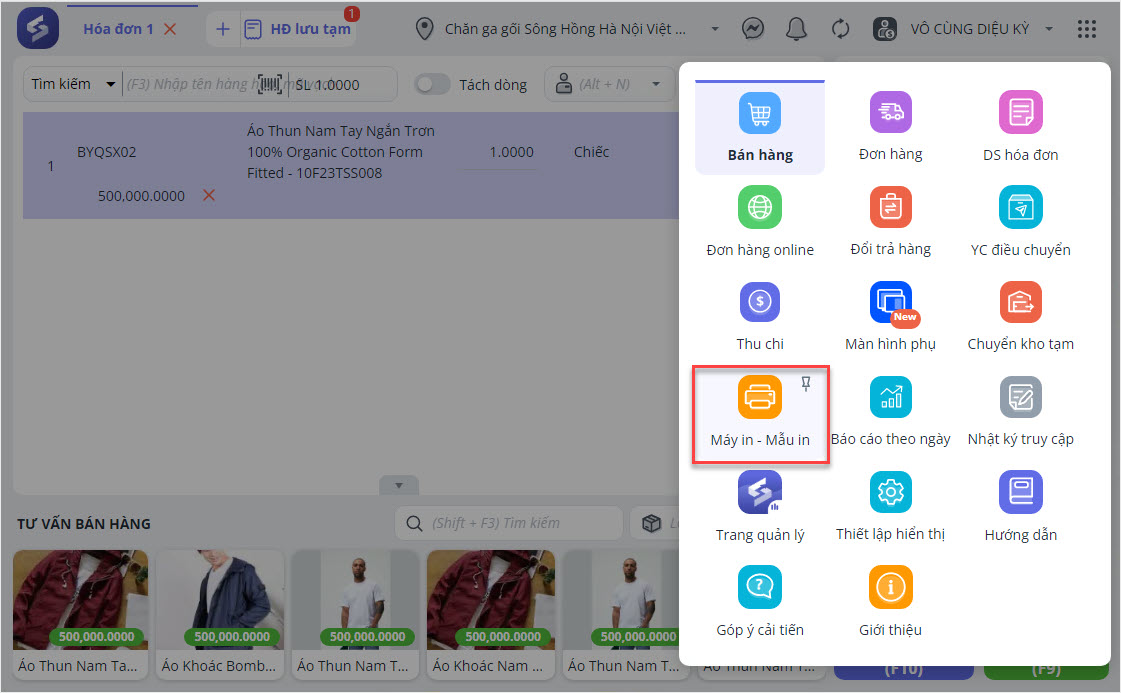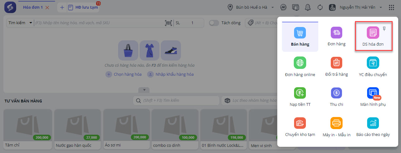 Bước 2: Trên thiết bị bán hàng, thu ngân chọn hàng hóa cần bán.