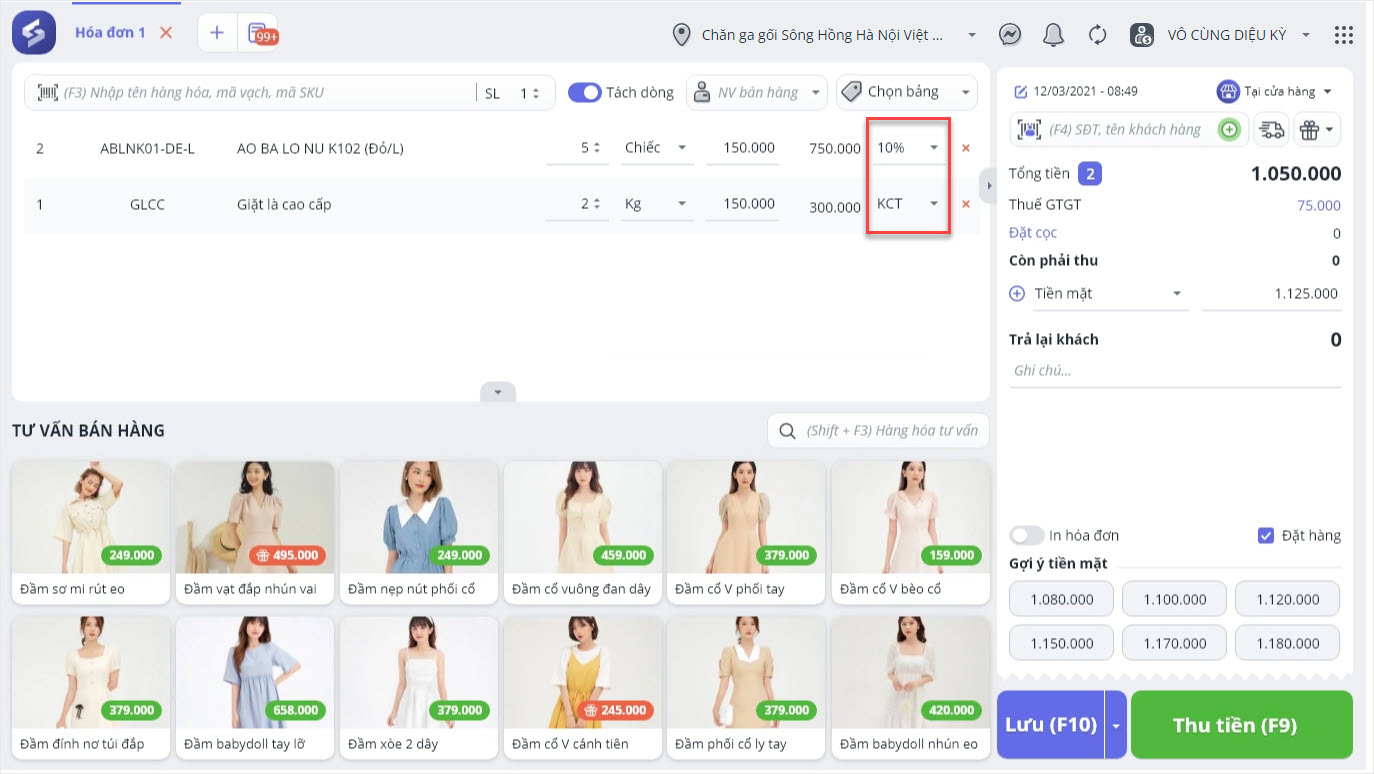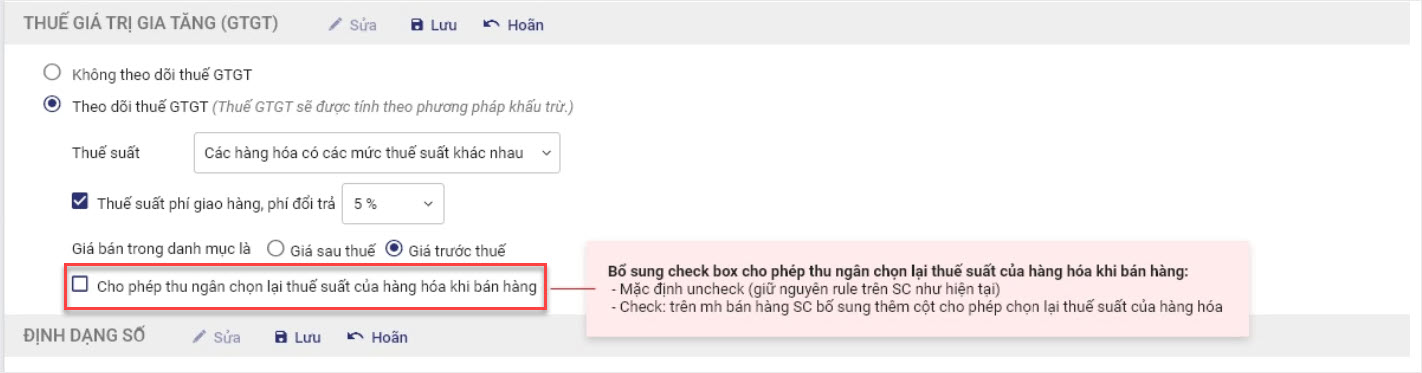 3. Cho phép thu ngân điều chỉnh thuế suất của hàng hóa khi bán hàng