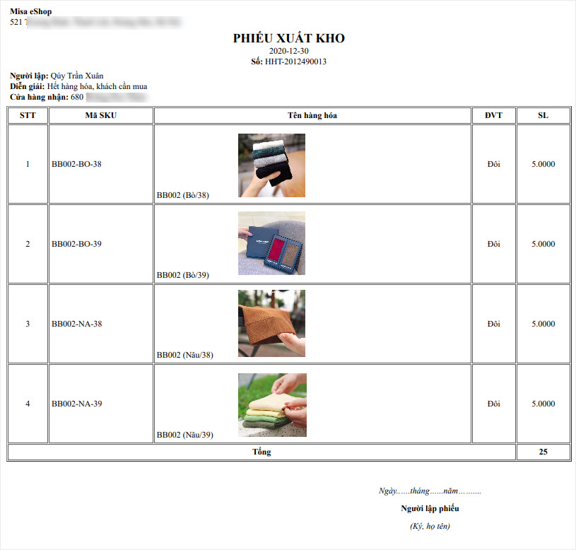 Bước 4: Sau khi thiết lập xong, trên mẫu in ra hiển thị ảnh hàng hóa lấy từ danh mục
