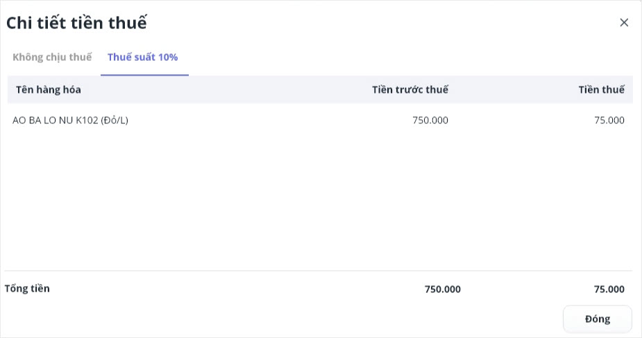Bước 3: Sau khi điều chỉnh, phần mềm tính toán tự động số tiền thuế dựa trên thuế suất mới nhập vào.
