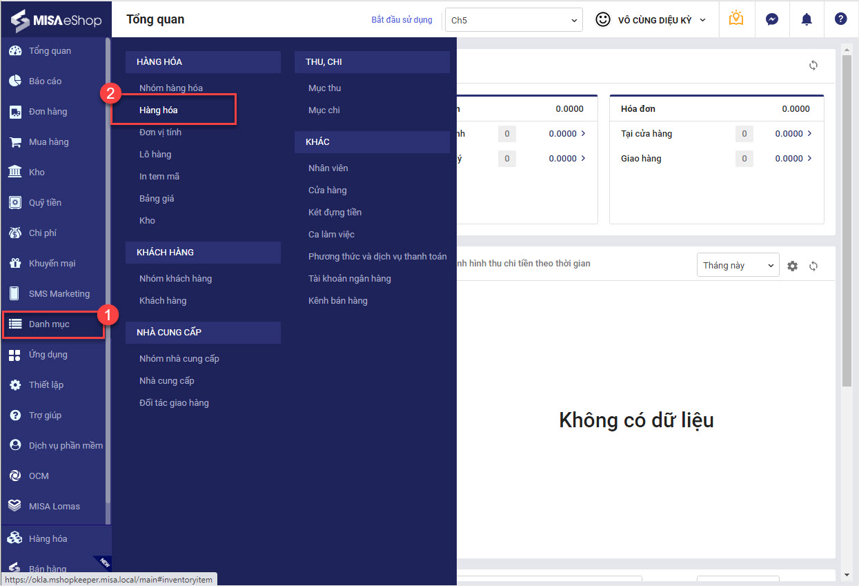 Bước 1: Trên trang quản lý, chọn phân hệ Thiết lập/Thiết lập chung