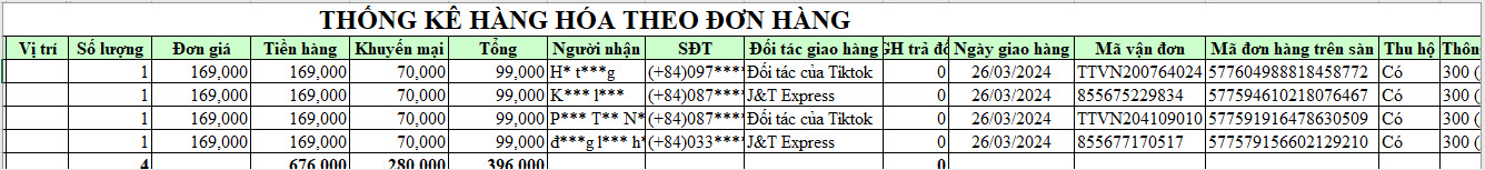 Cung cấp thông tin chi tiết về mã đơn hàng trên sàn khi quản lý xem file thống kê đơn hàng được xuất ra từ chương trình giúp quản lý theo dõi và phân tích các đơn hàng được thực hiện trên sàn một cách hiệu quả