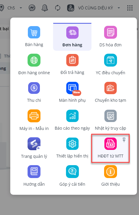 Tìm tới phần Phát hành hóa đơn điện tử từ máy tính tiền: