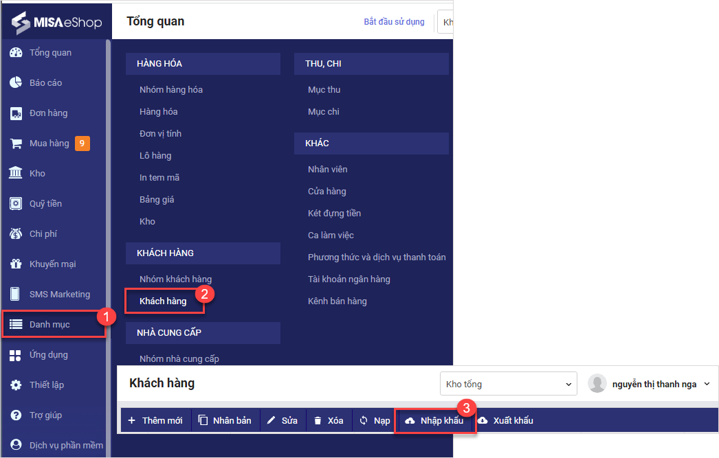 Trên trang quản lý, chọn Danh mục/Khách hàng và chọn Nhập khẩu khách hàng