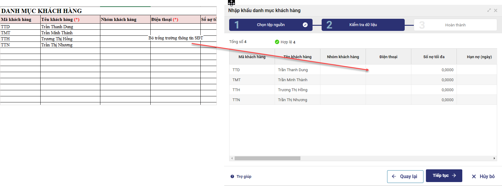 Trên file nhập khẩu, chương trình bỏ trống trường thông tin SĐT và cho phép nhập khẩu thành công khách hàng không có SĐT