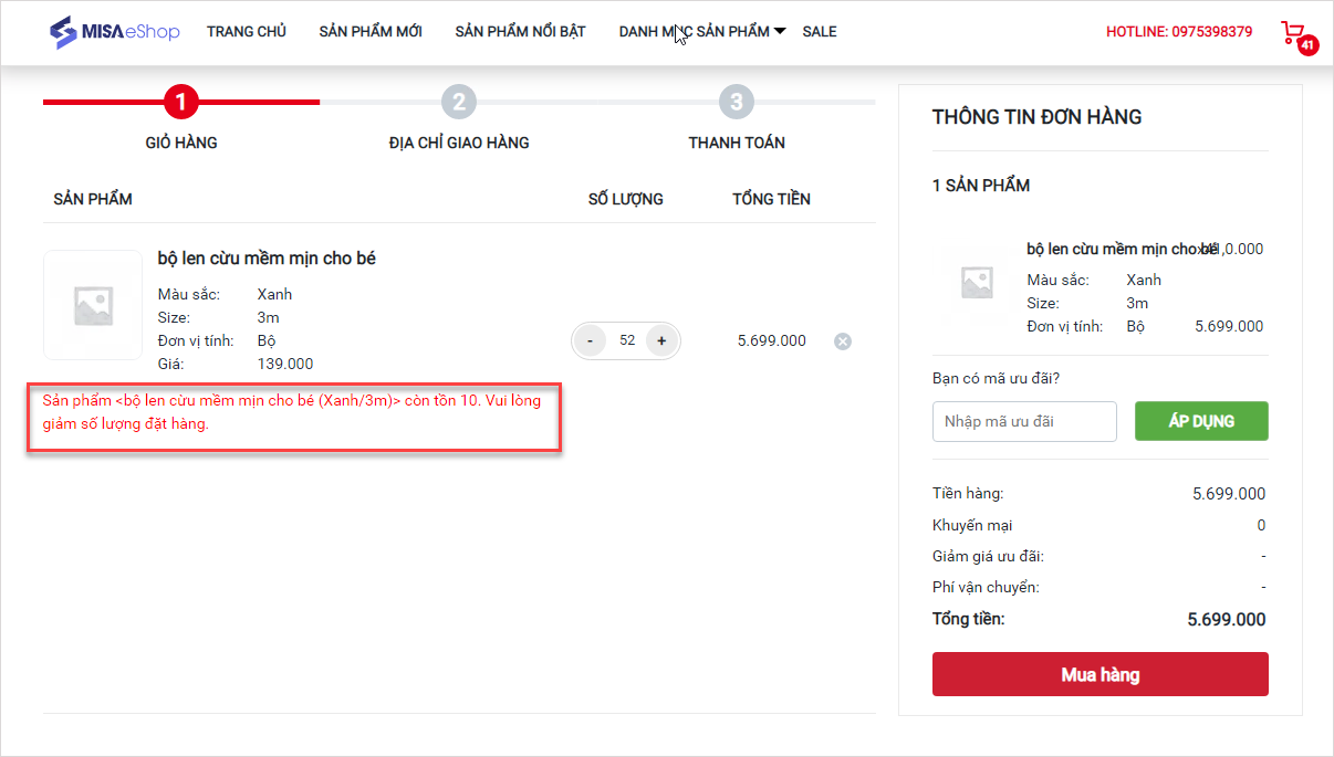 3. Quản lý cửa hàng có thể chặn khách đặt hàng khi vượt quá số lượng tồn kho