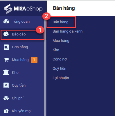 Trên trang quản lý, chọn Báo cáo/Bán hàng