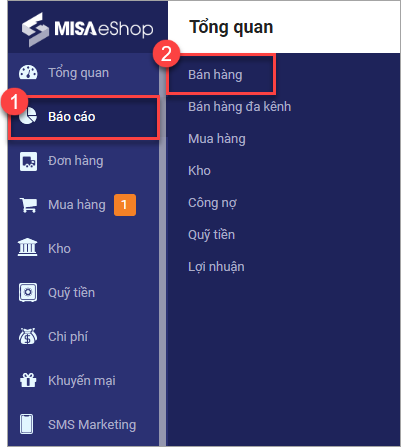 Trên trang quản lý, vào Báo cáo/Bán hàng