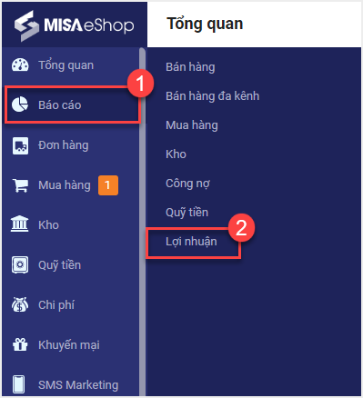 Trên trang quản lý, tại danh mục Báo cáo/Lợi nhuận