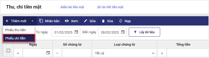 – Chọn Phiếu chi tiền để bắt đầu tạo phiếu