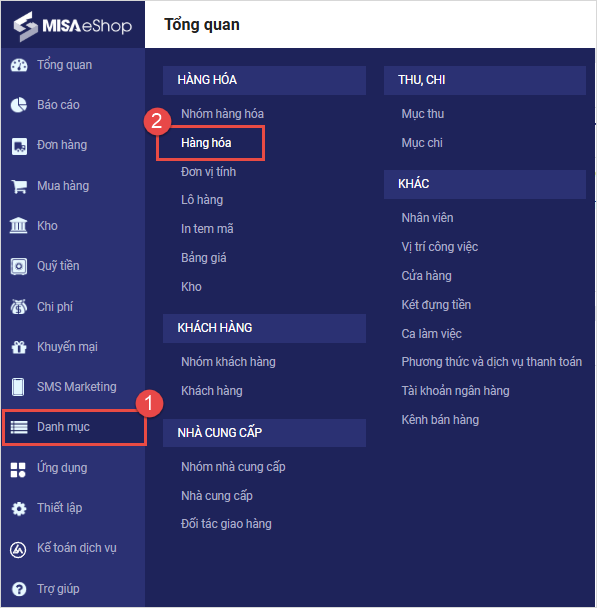 Bước 1: Vào phân hệ Danh mục/Hàng hóa
